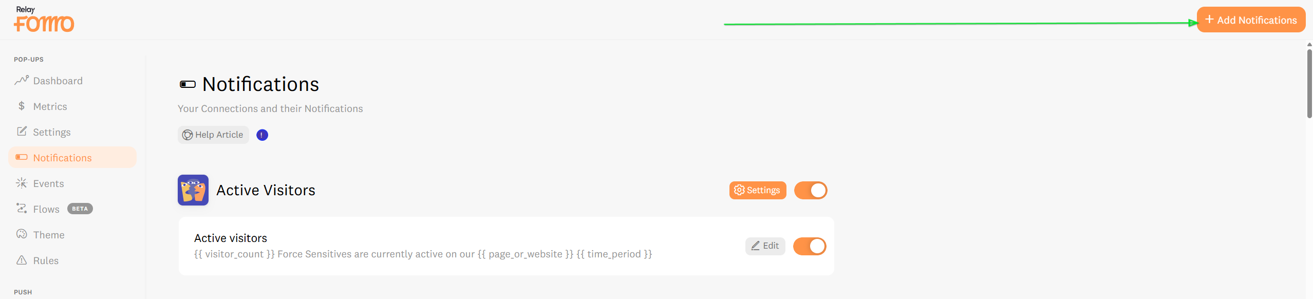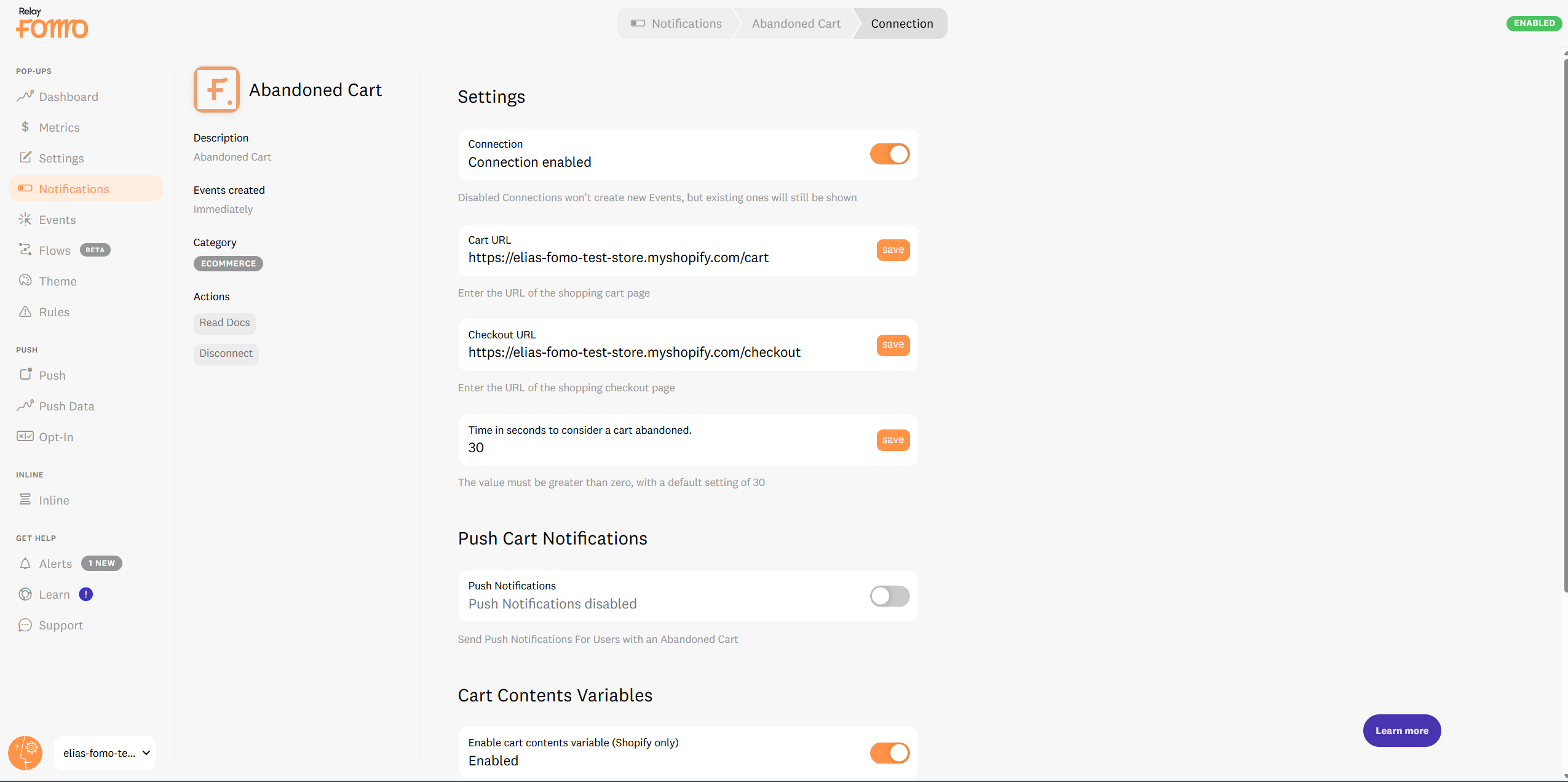You’ll find Abandoned Cart right at the top of the Fomo notifications section. Click it to begin!
