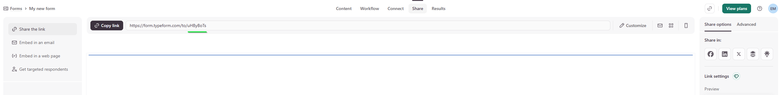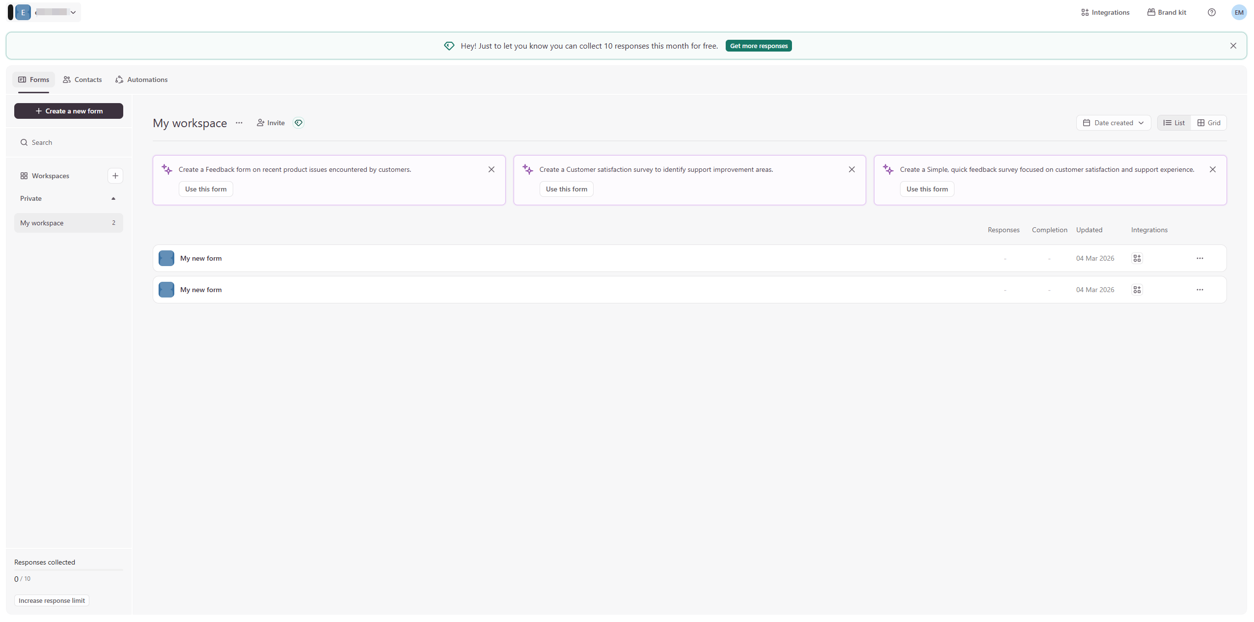 - Sign into Typeform and go to your workspace.