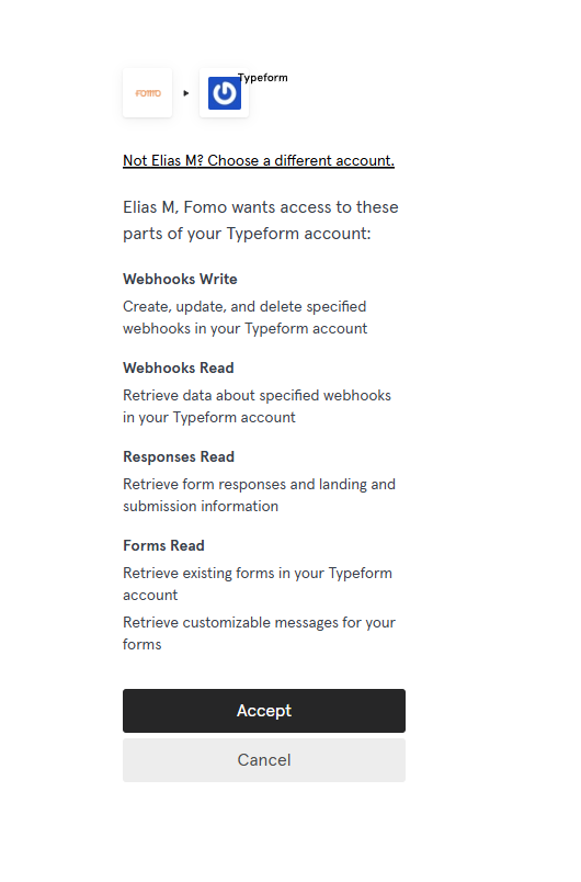Once logged in, click Accept to authorize Fomo.