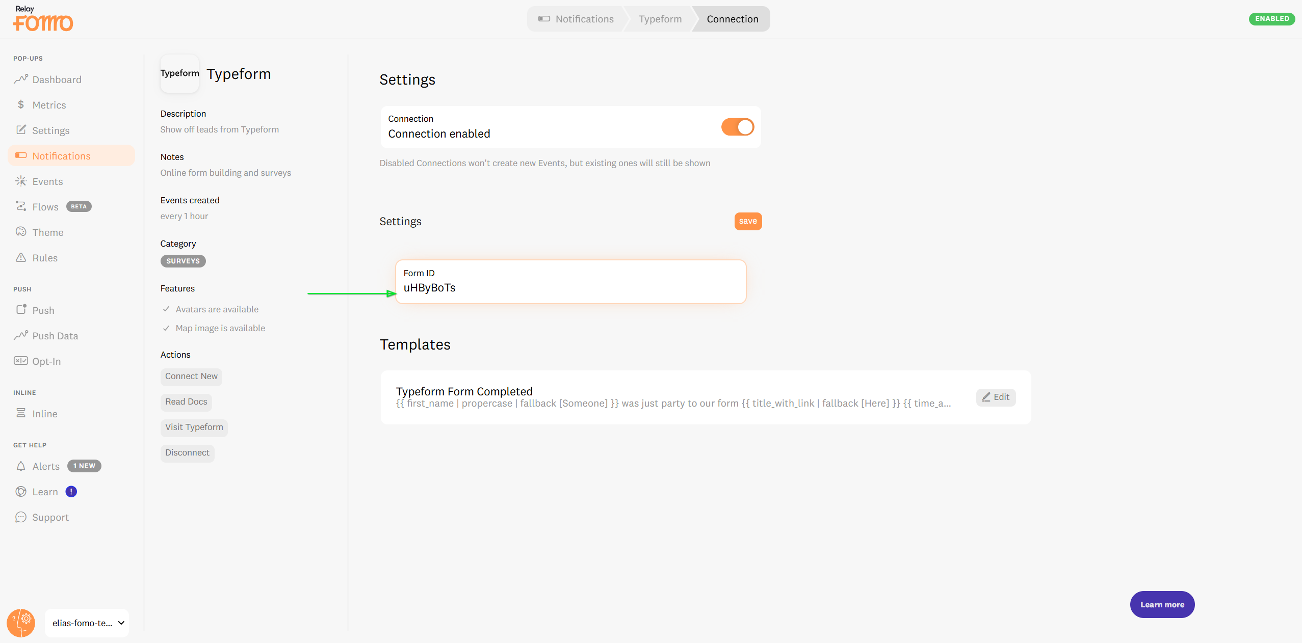 Copy that ID go back to Fomo and paste it into your Typeform settings page.