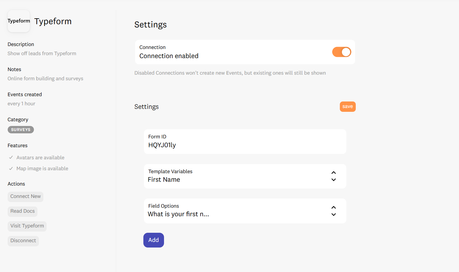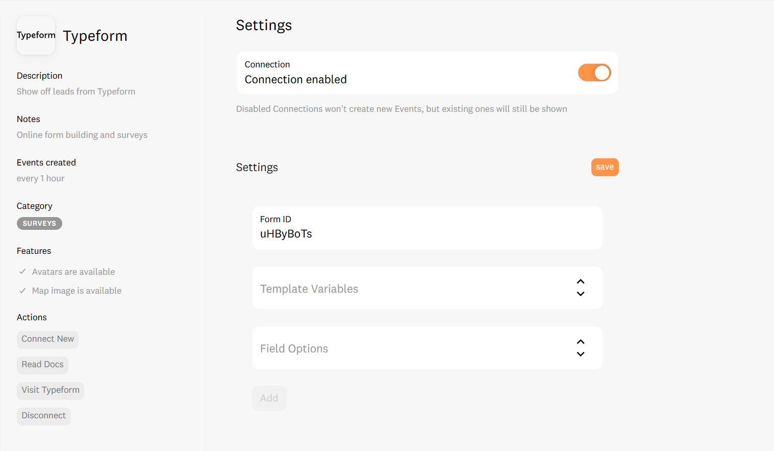 For each new form, navigate back to Notifications Tab > Typeform settings and click Connect New. Follow Steps 1 through 4 for each one.