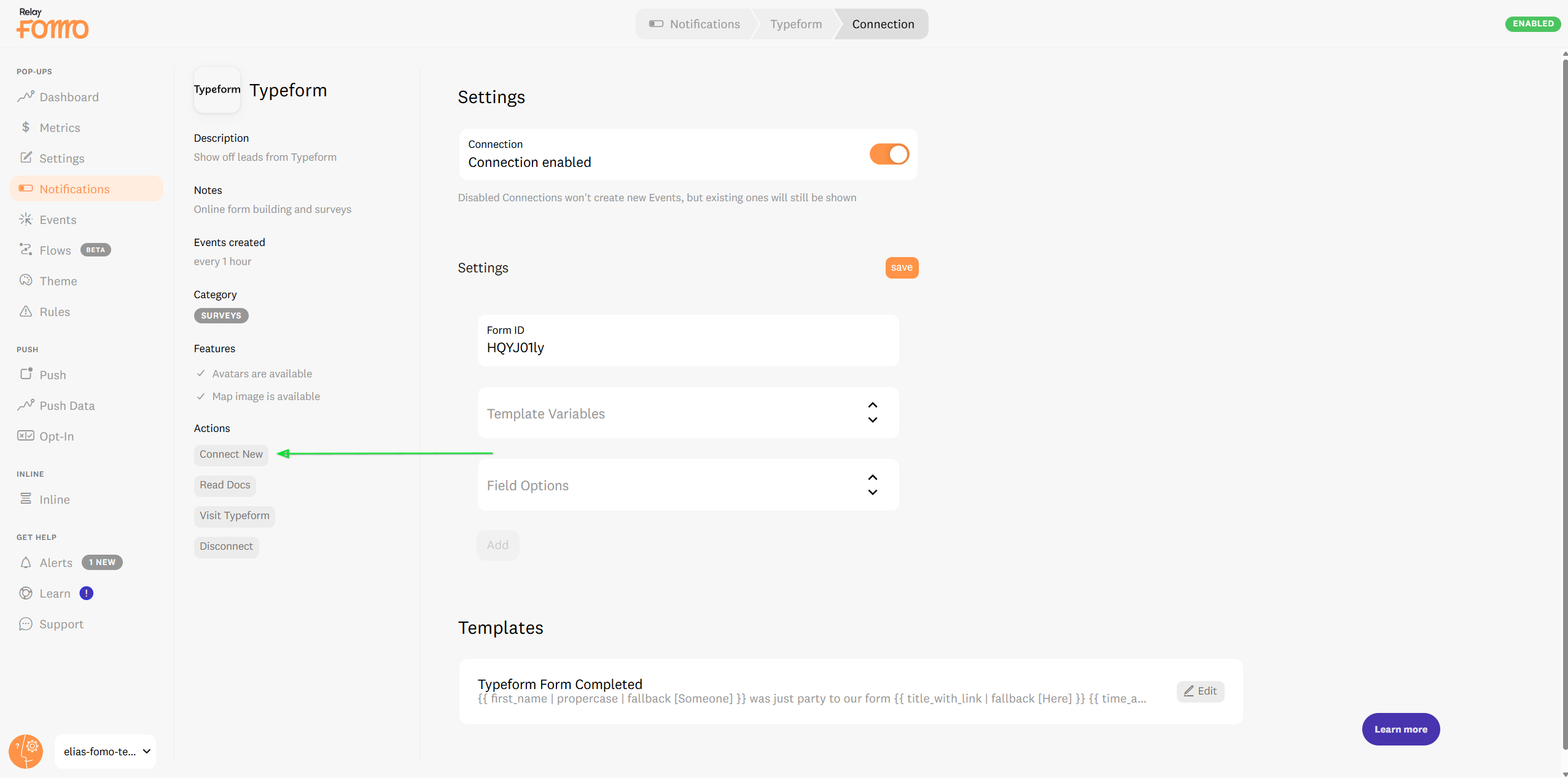 Connecting Typeform to your Fomo account takes just a few seconds and requires zero coding experience.