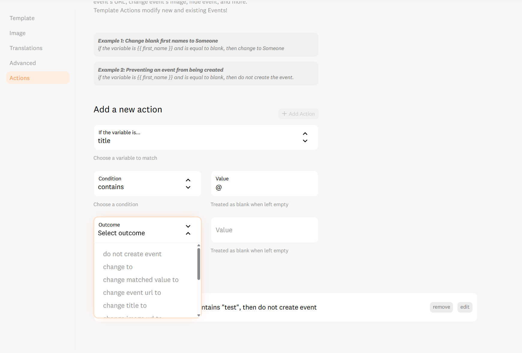 Template Actions allow you to set "If/Then" logic that automatically cleans, filters, or blocks specific data before it ever reaches your visitors. This ensures your social proof remains a polished, high-converting asset.