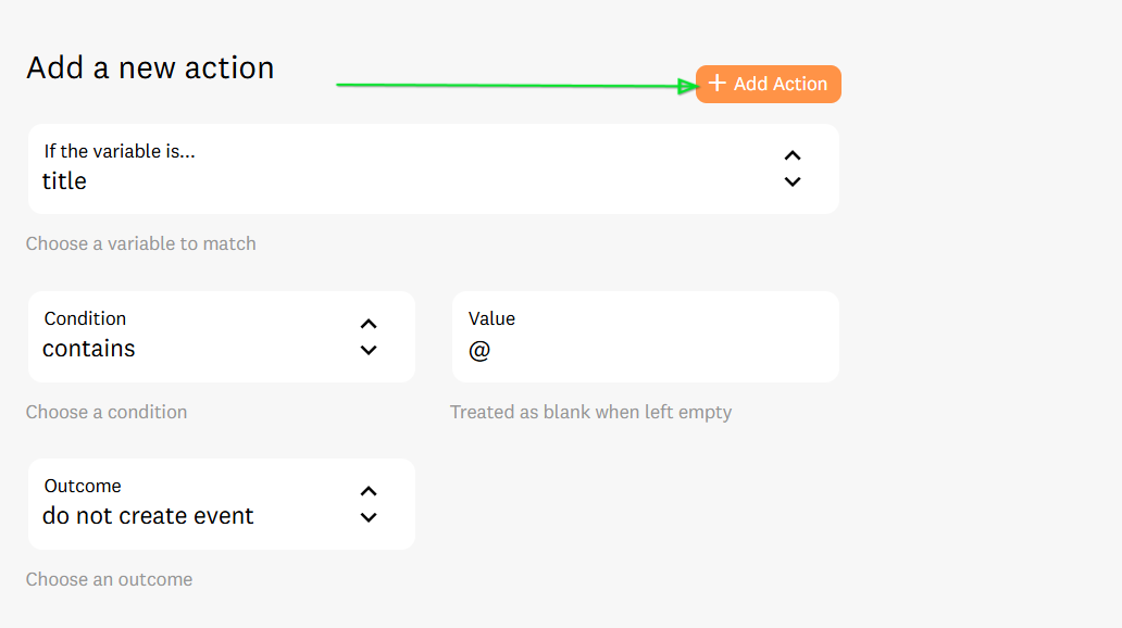 Save: Click the orange +Add Action button to save the action