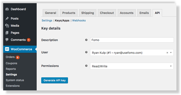 Why Read/Write? Don't worry Fomo will never modify your customer or product data. We require the 'Write' permission specifically to plant a "new order" webhook. This is the technical "handshake" that allows WooCommerce to notify Fomo the instant a sale happens.
