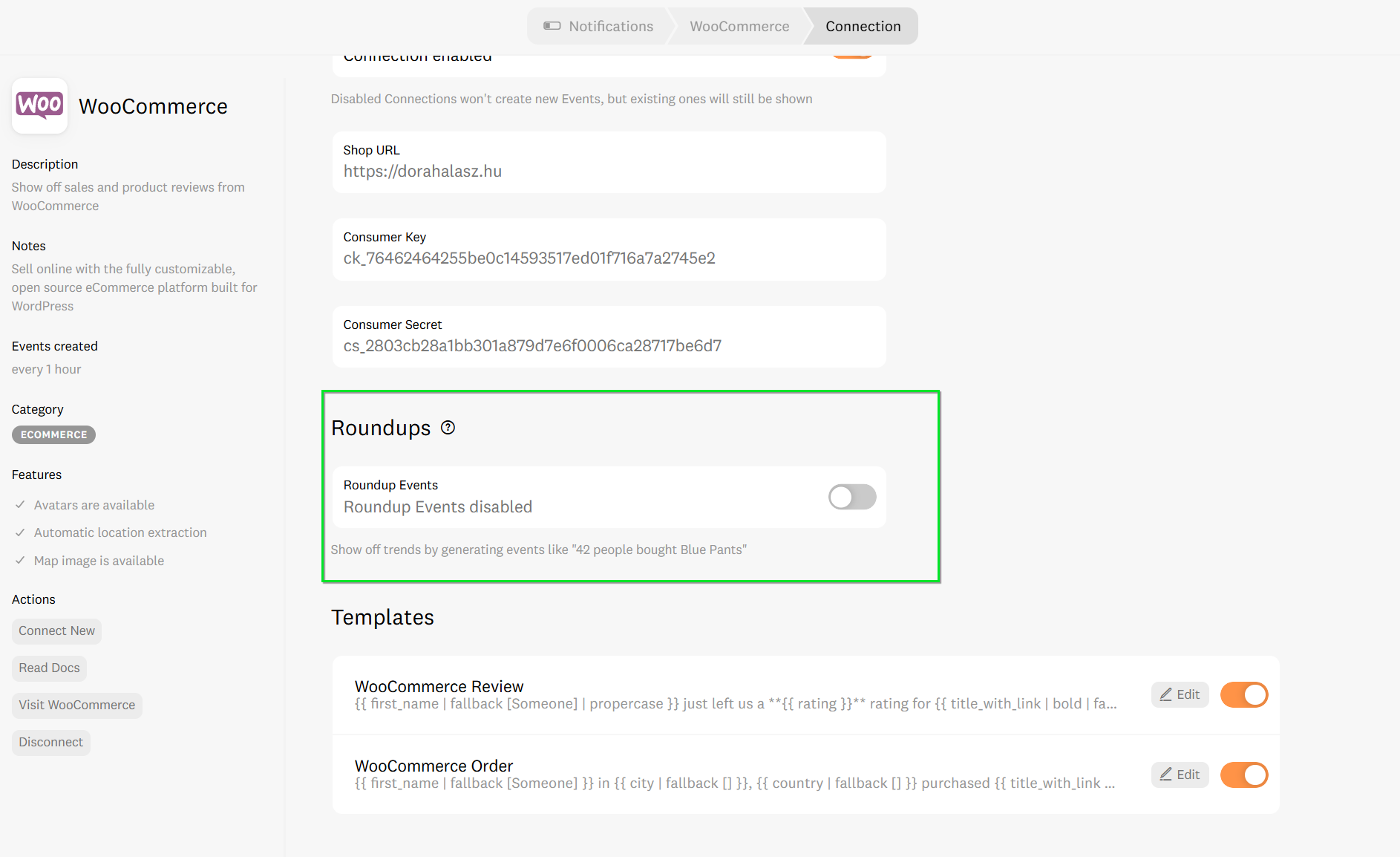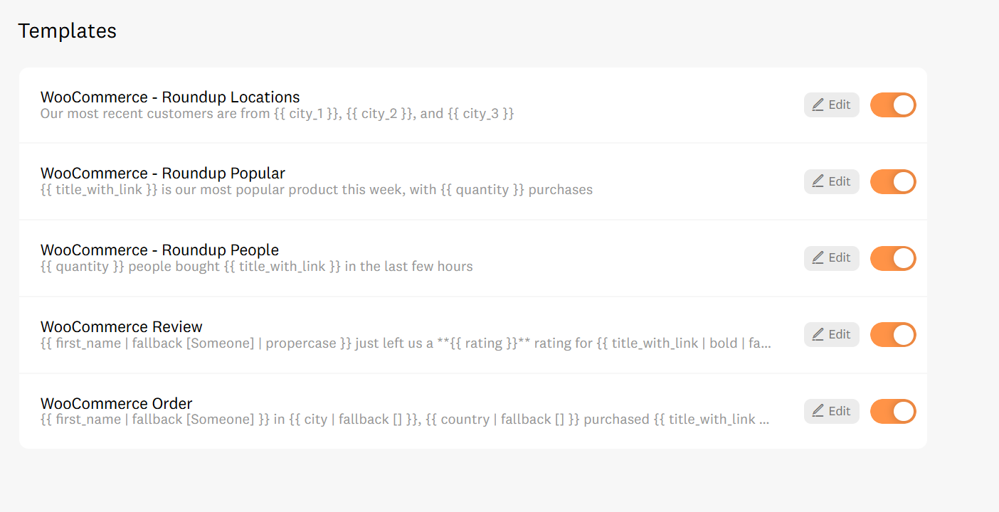 Reviews: If you want to show what people are saying, toggle the "WooCommerce Review" template on. (Note: This requires WooCommerce v3 API. Email us if you need help checking!)