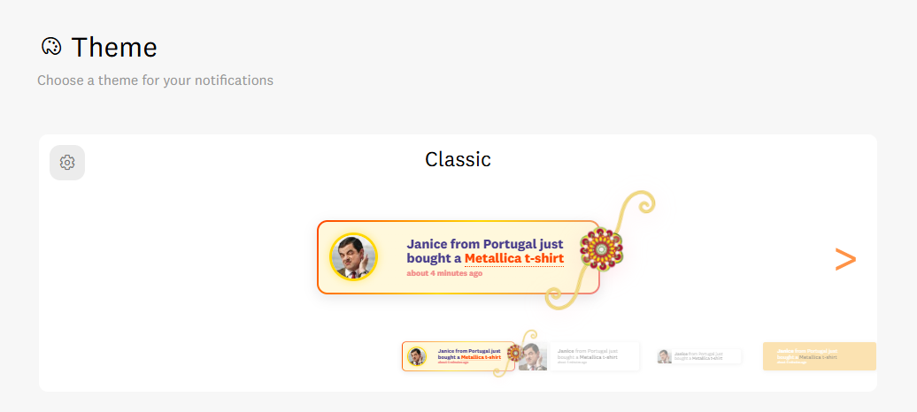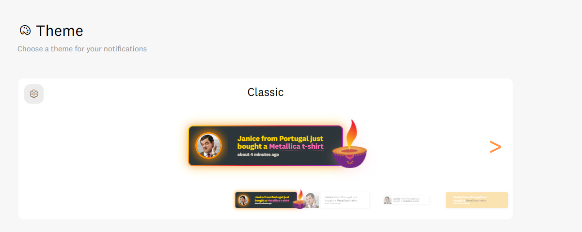 Want your Fomo notifications to reflect your brand’s personality or celebrate cultural moments? We’ve created a growing collection of custom themes including Special Indian Holidays, Italy and Australia-inspired designs, and more that you can easily apply using CSS.